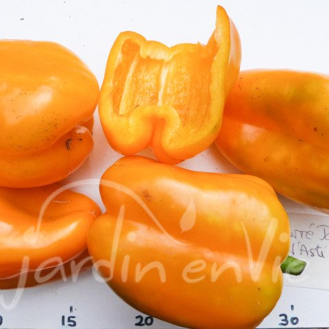 Variété mi-précoce originaire d’Italie, de gros poivrons carré à quatre lobes, jaune vif à maturité. Chair ferme, juteuse, d'une saveur douce et sucrée.