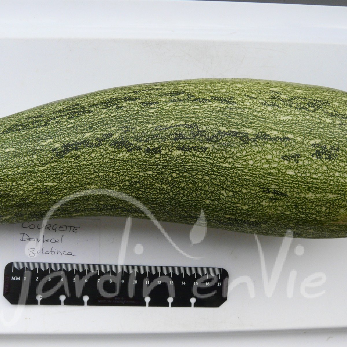Variété moldave. Fruits allongés vert clair rayé de vert foncé, très productive et très résistante. Récolte de juin à octobre. (env. 10 à 12 grn/g)