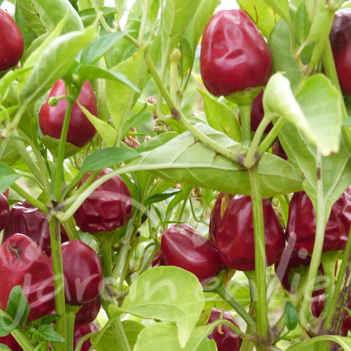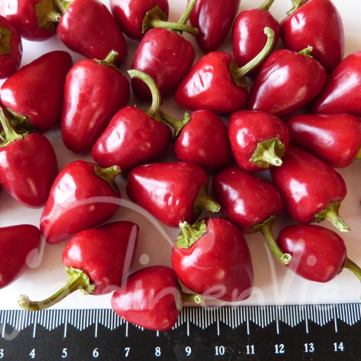 D'abord de saveur fruitée, voire sucrée puis très fort d'où son nom! Petit plant compact; fruits érigés de 3cm de long, pointus, virant au rouge à pleine maturité, en passant par le orange le jaune et le blanc. Très décoratif.