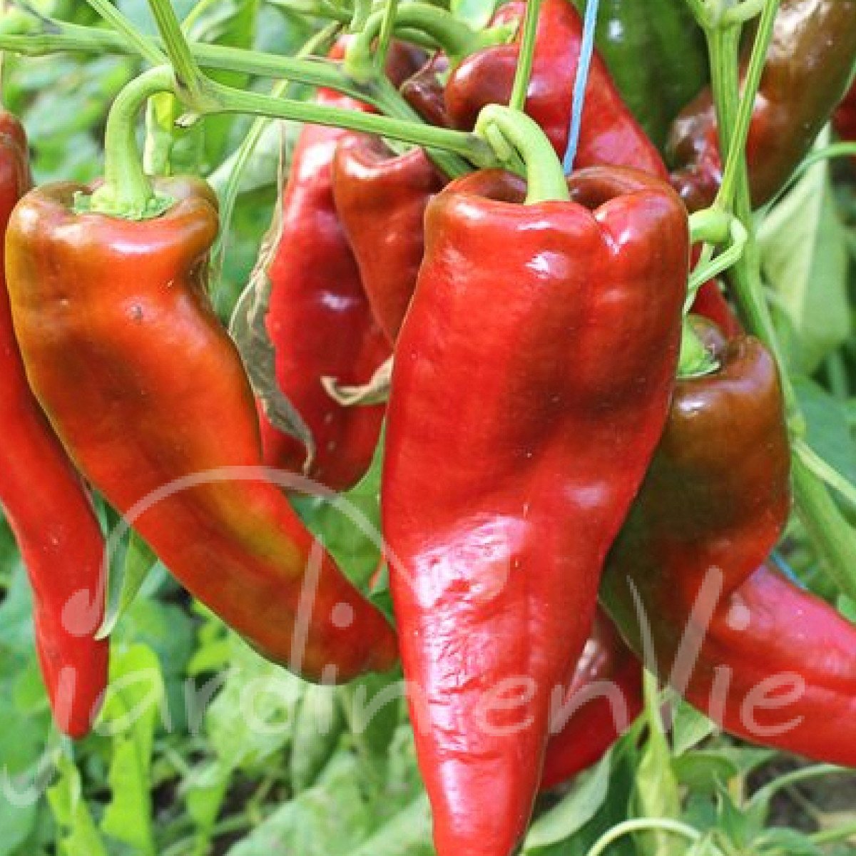 Variété mi tardive, vigoureuse, à grands fruits longs coniques (20cm), vert foncé brillant virant au rouge à maturité. Chair épaisse et juteuse, de bonne saveur, à consommer autant cru que cuit.